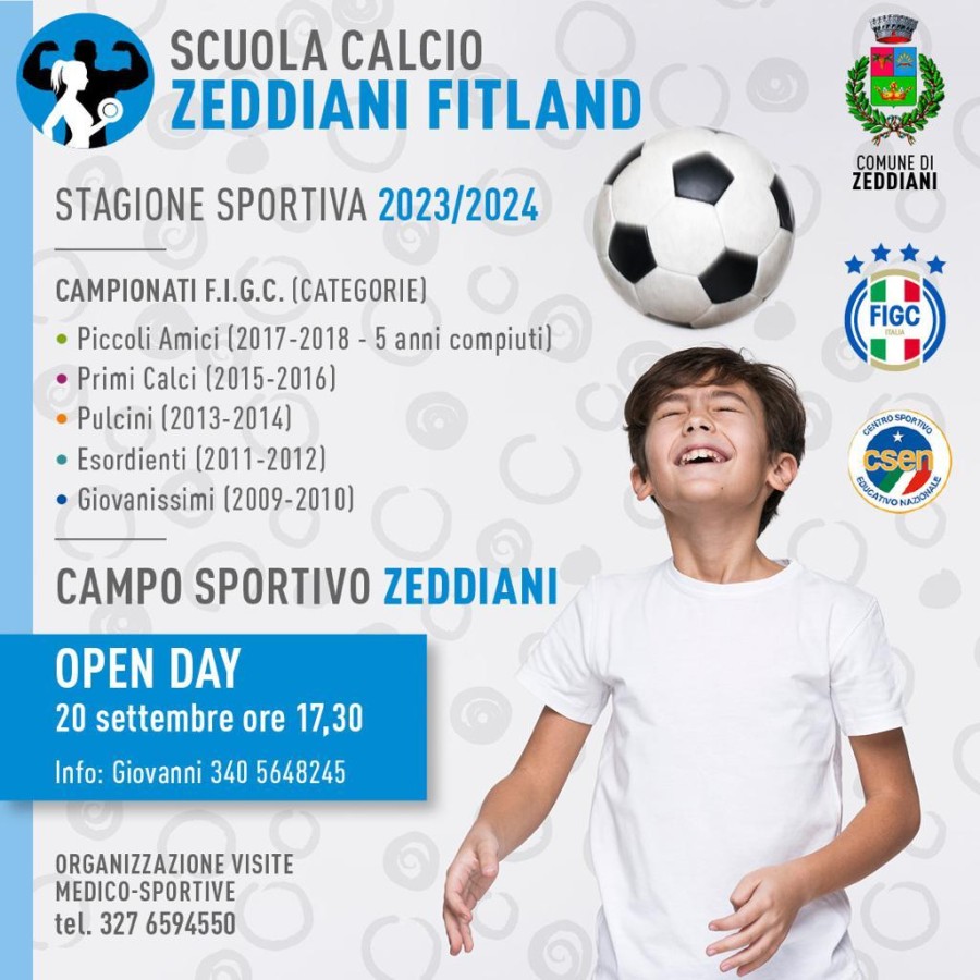 L’Amministrazione comunale, in collaborazione con la Società Sportiva Fitland, promuove l’esordio della Scuola Calcio, che consentirà di ampliare il panorama delle discipline sportive che si possono praticare a Zeddiani.