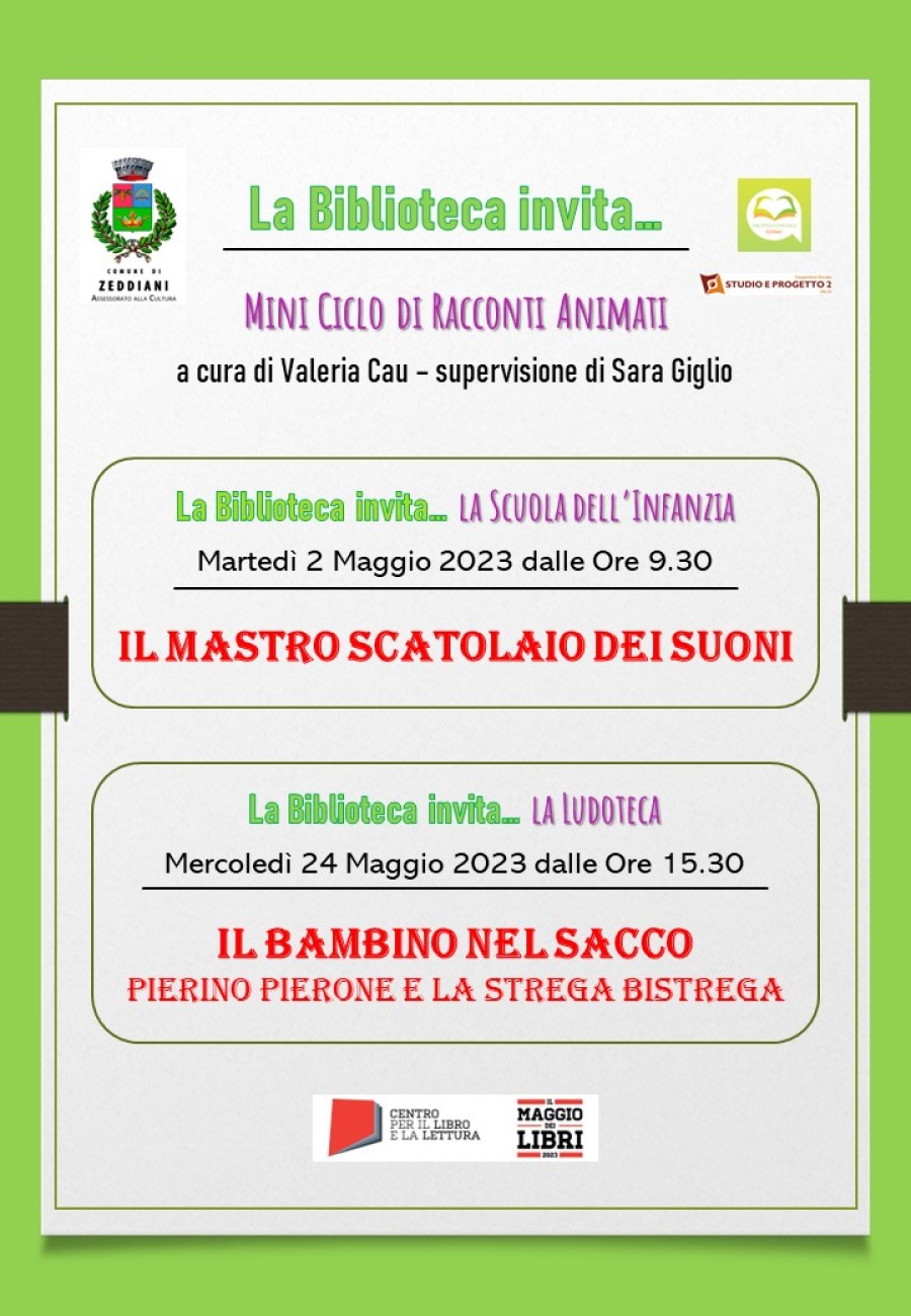 Quest’anno, in occasione de “Il Maggio dei Libri”, la campagna nazionale del Cepell (Centro Per il Libro e la Lettura), l’Assessorato alla Cultura, in collaborazione con la Biblioteca Comunale, propone un mini ciclo di due eventi dal titolo “La Biblioteca invita…”.